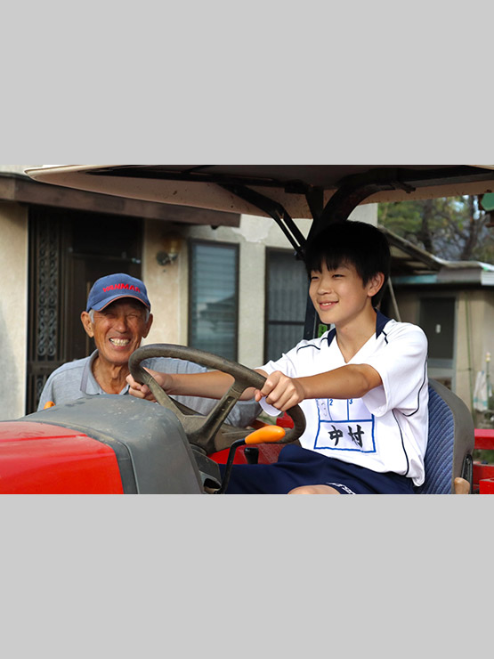 おじいちゃんがトラクターのお手入れをしていた時に、長男の弟がおもむろにトラクターに乗っておじいちゃんの真似をしていました。