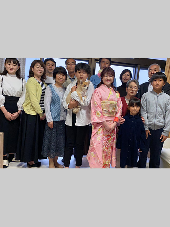 今回は次女の成人式前撮りの日お祝いに家族が集まりました。生憎の雨で外で撮影出来なかったので家の中で取ったのですが狭いのでどうしたら全員(セルフタイマーで)入るか四苦八苦。