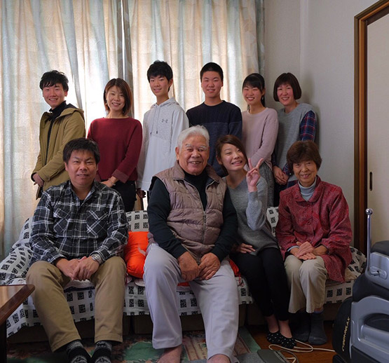 奄美大島の特産品である大島紬を着て、サザエさんのエンディングをマネして撮った写真です。普段あまり着物とか着ない父でしたが、孫にみんなで紬を着て写真を撮ろうよと言われて実現しました。昨年のお正月です。元気な父でしたが、肺気腫を患い他界しました。家族のとても良い記念になった一枚です