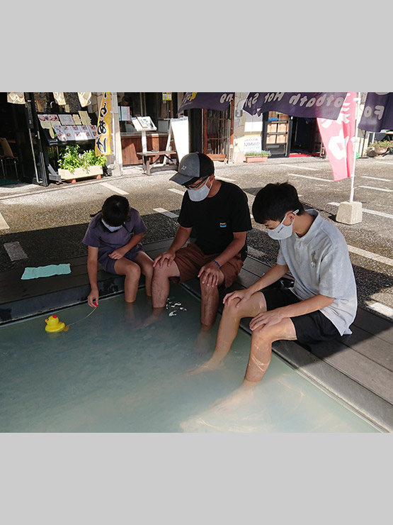 霧島へ家族旅行に行き、ヒヨコも一緒に仲良く足湯に浸かりました。旅の疲れが癒され、ホッとする瞬間でした。