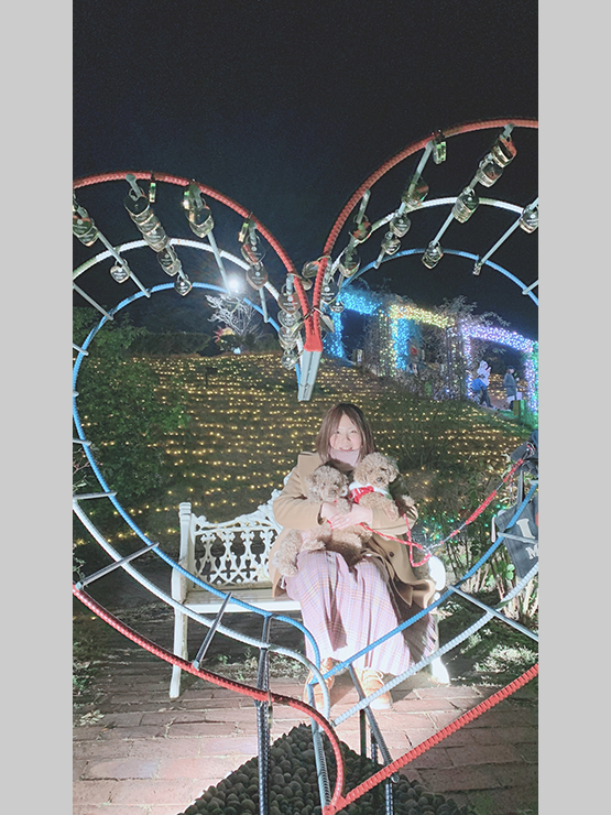 愛犬のマロン、レモンと、茨城のイルミネーションに行った時の写真です。