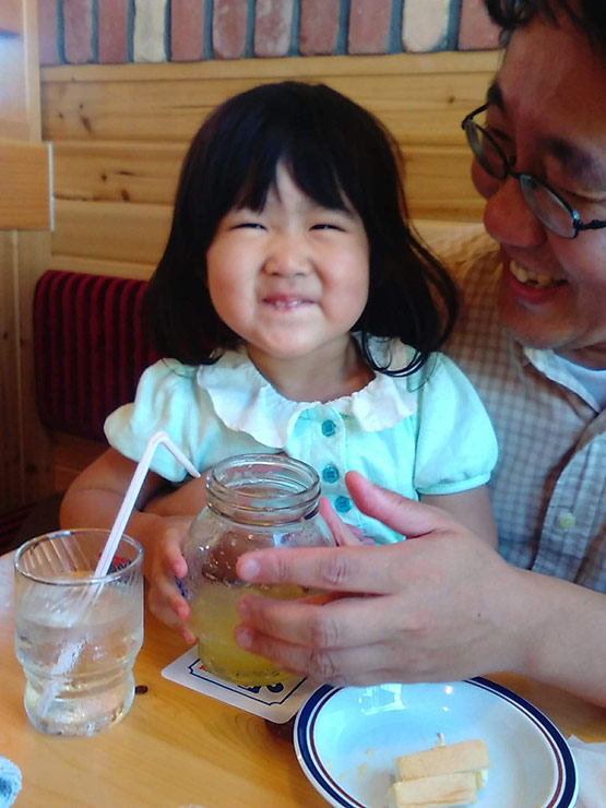 初めて、お店で飲む、大きなオレンジジュース。なんて美味しいんだろう。とニコニコしながらコップから手を離さない娘。こんなに満面な笑みで飲んでる娘を見て、なんだか私達もほっこりさせられた一時でした。