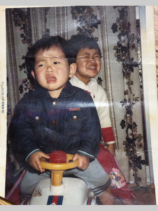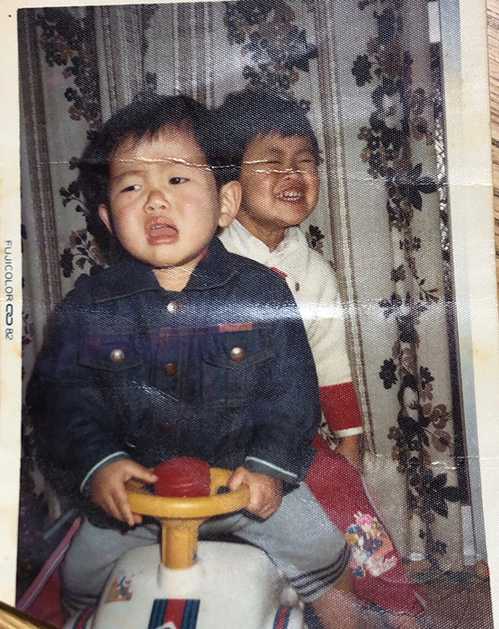 40年近く前のことで(笑)詳細は思い出せませんが、弟が乗っている車の後ろに無理やり乗って嫌がられているのを楽しんでいると思われます(汗)