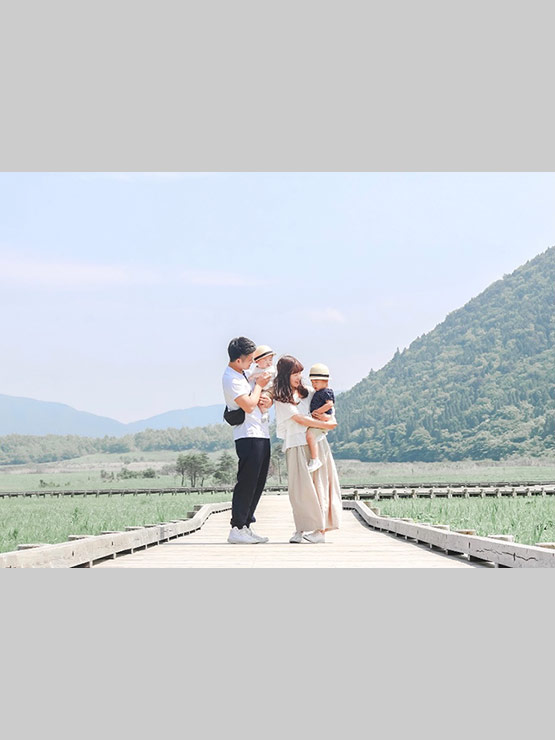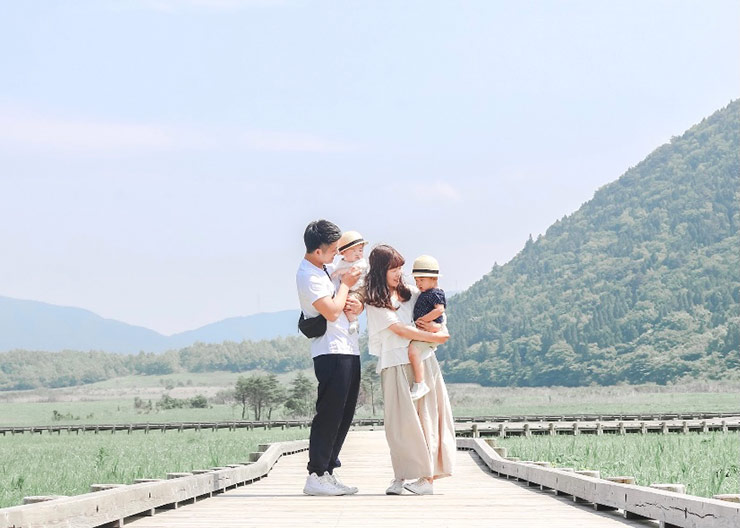 大分県九重のタデ原湿原での家族写真です。
