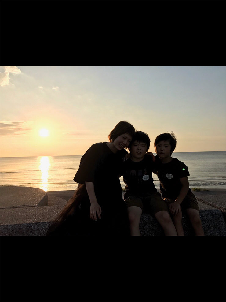 真玉海岸の夕日を背に愛する妻と子を撮影致しました!