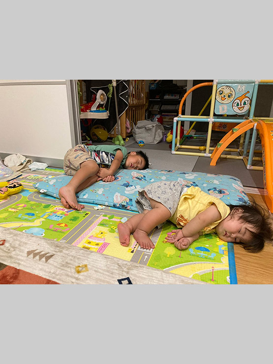 別々に寝て、寝た方向も違ったはずなのに気付いたら同じ格好になってて思わず主人と笑っちゃいました。