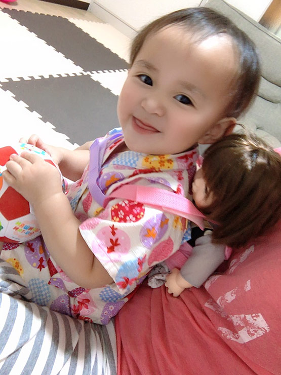 人形の抱っこ紐を買ったその日からぽほちゃんのママに!自分から抱っこ紐をママに持ってきて「んっ」と言われます(笑)つけてあげるとニコッとすごく可愛い笑顔をみせてくれ、人形をあやす姿にほっこりします。