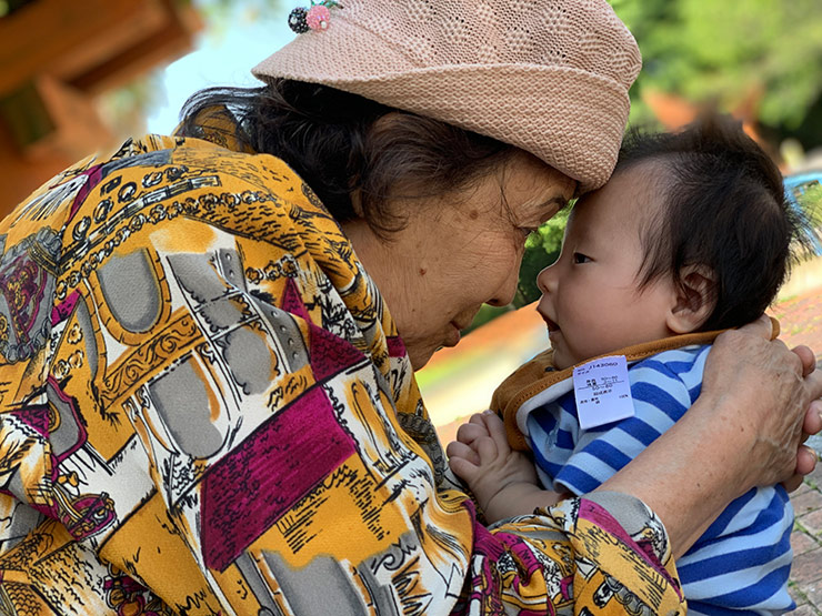 祖母が息子をあやしてくれている写真です。