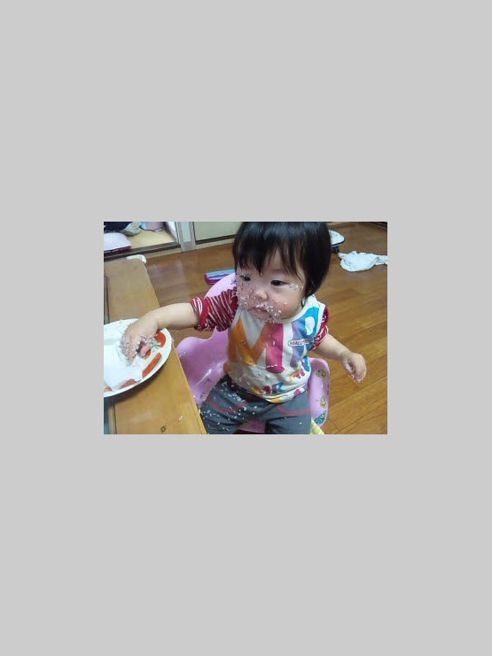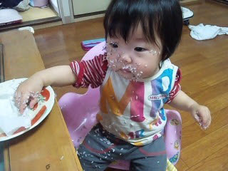父の誕生日に初めて子供のケーキデビュー。幸せそうに食べていました。