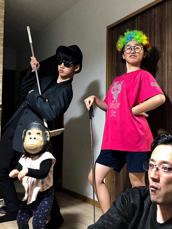 パーティー後等ではなく日常の中で、子供3人は突然のパフォーマンス。1人ずつ始まり、最後には3人で。