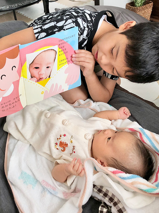 絵本を読んであげているお兄ちゃんの写真です!