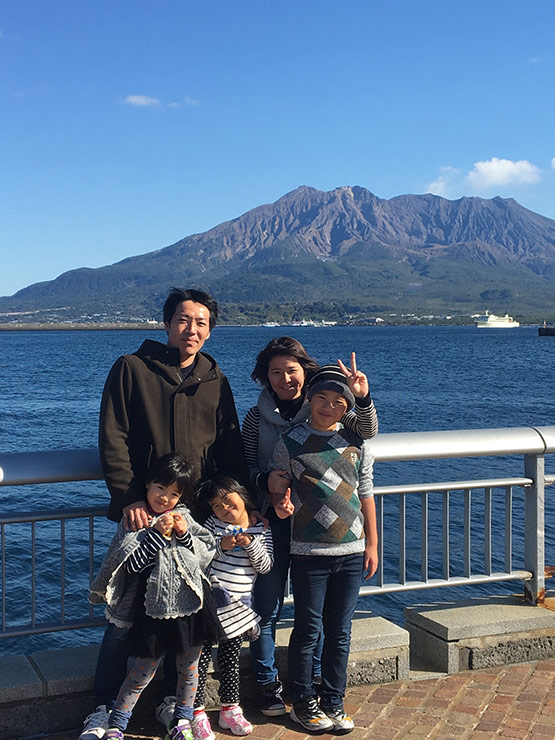鹿児島のシンボル、桜島がとーっても綺麗で、つい家族みんなで写真に収めました。風が強い日でしたが、お気に入りの一枚です。