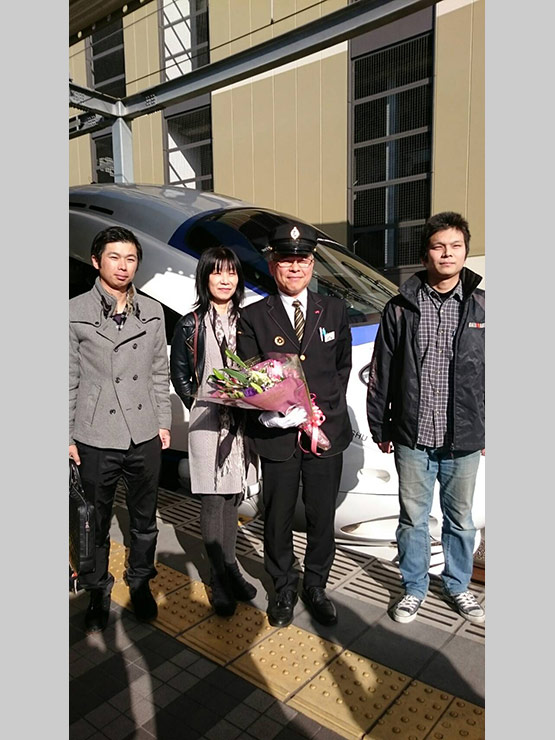 電車運転士の夫のラストラン。数日前に入院した母は乗車が叶いませんでした…1番乗りたかったと思います。親子4人だけの写真になりました。