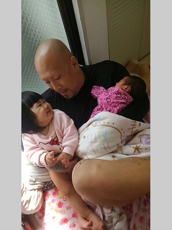 やっとお姉ちゃんとパパに抱っこしてもらった時に撮りました。