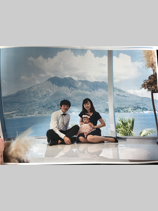 桜島をバックに家族写真💕