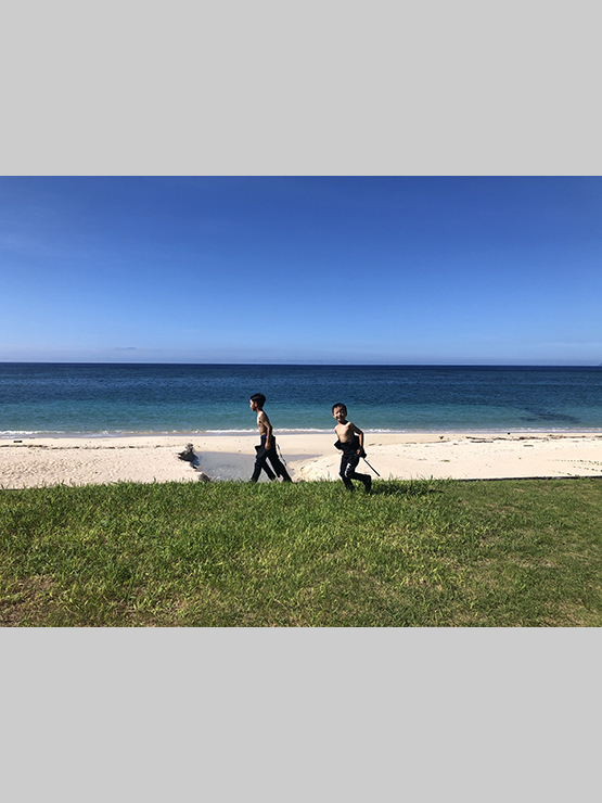 ウェットスーツも様になるほど、たくましく成長しています。