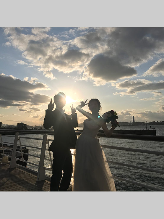 前撮りを門司港で行いました。その際のカメラマンデータではなく、オフショットで応募!2人ともとっても楽しそうないい笑顔。これから先の結婚生活もずっとずっと笑って過ごしていきたいな♪