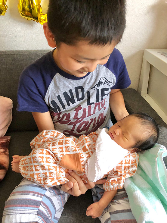 待ちに待ったきょうだい。コロナで退院まで会えず、やっと会えて初めてのだっこの写真です