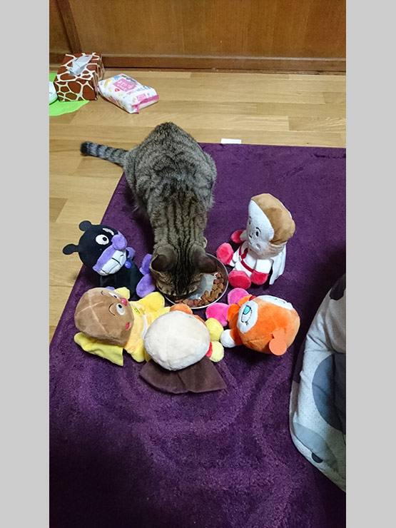 我が家のアイドル、マルが完全に包囲されてしまっている、写真です