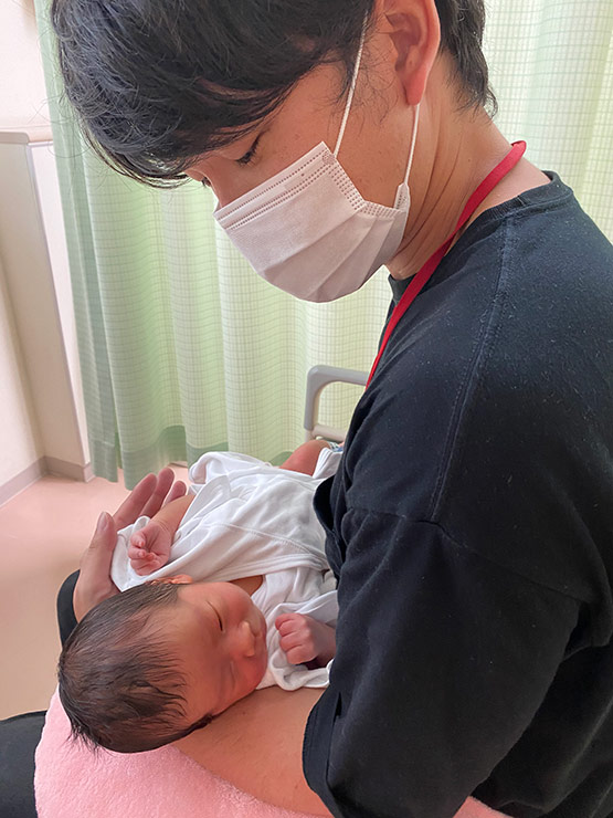 コロナ禍で立ち合いは出来ず、限られた面会となった中で、パパと我が子のはじめましての瞬間です。