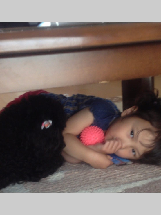 歳の離れた妹と愛犬がテーブルの下で一緒に寝てました。可愛くてついついパシャリ。