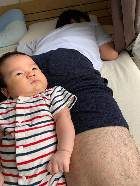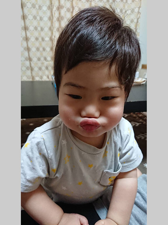 ふと息子を見たらこの顔で、パパもママも大笑いしてしまいました。