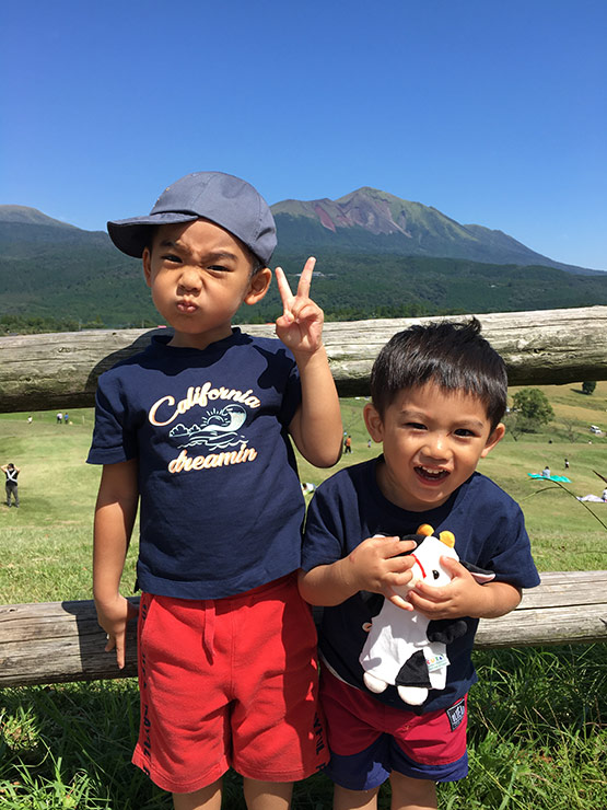 秋晴れの中広場で大はしゃぎ!大自然最高!