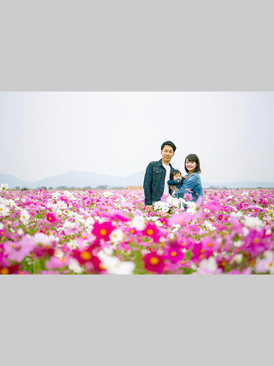 昨年家族3人ではじめてコスモス園に行った時の写真です。