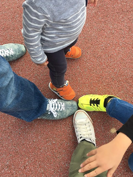 下の子が随分歩けるようになって家族で公園に行った時の写真です。鬼ごっこをする前に集まった時に撮影しました。なんだか家族団結した感じがしたのを覚えてます。