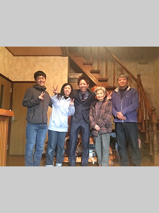 長男の成人式あと、夕方に自宅玄関で撮りました。
