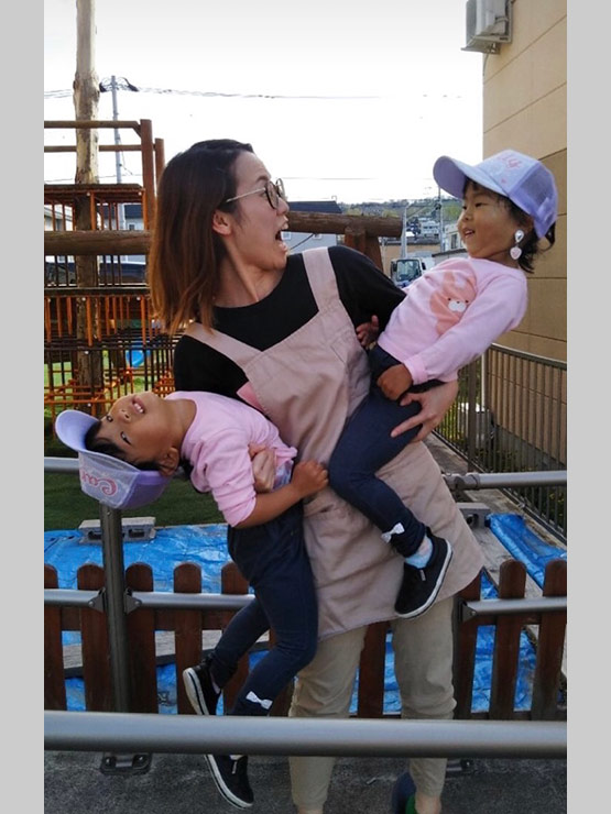 先生は通園していた頃と変わらず、ちょっと大きくなった双子をダブル抱っこしてくれました。