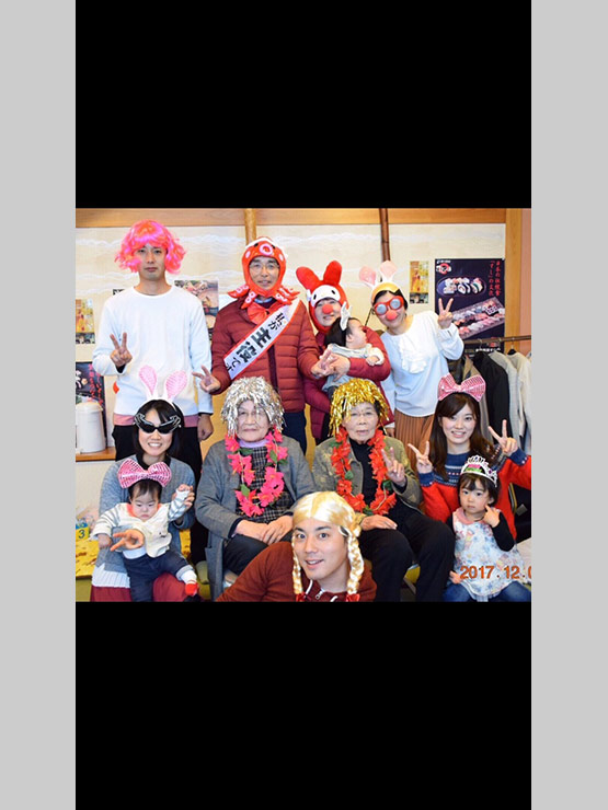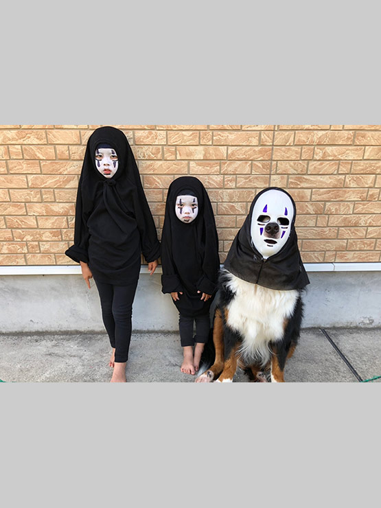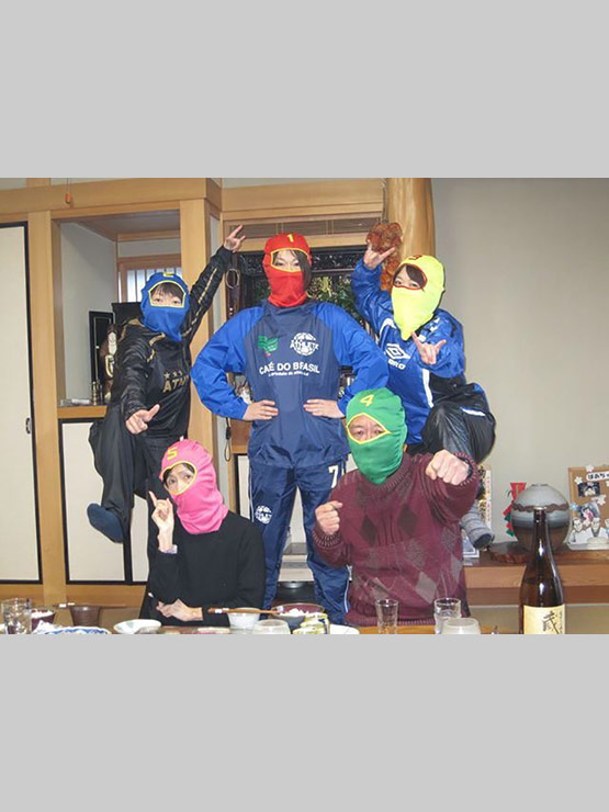毎年恒例で大晦日に撮る家族写真です。いつもは干支の真似をします。この年は喪中だったので、ひっそりしようと思ってこれにしましたが、いつもより派手になってしまいました。これを機に毎年その年の流行を仮装するようになりました。干支も一周して、年々家族が増えてもこの行事だけは続いています。