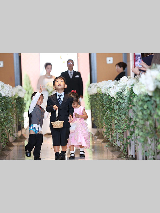 姉の結婚式でフラワーシャワーをした3歳の息子。