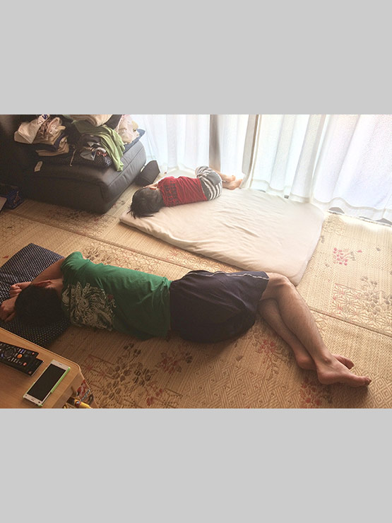子供とパパが一緒にお昼寝していたら、同じタイミングで全く同じ格好に‼︎足の曲げ方から手の位置までピッタリで、親子だなぁ~と記念にパシャリ✨私の1番お気に入りの一枚です。