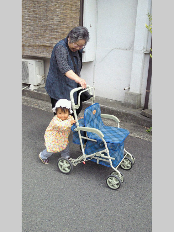 長女が歩けるようになった頃、祖母とお散歩した時の一枚です。2人がほのぼのしていて大好きな写真です。