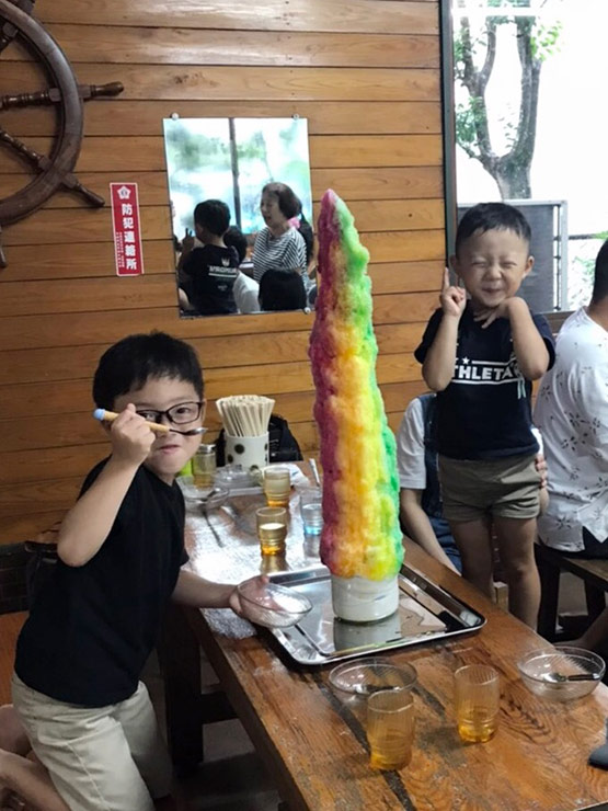 宮崎にある、百姓うどん屋さんの特大かき氷です。