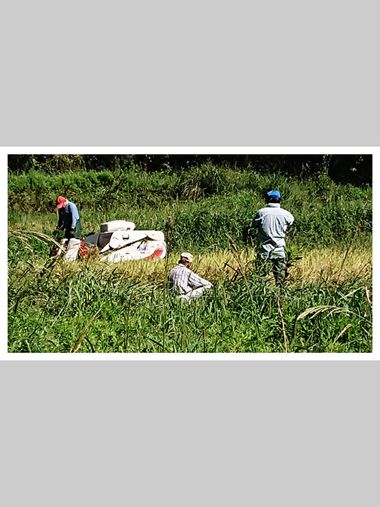 父が毎年頑張っていたお米作り。高齢になり身体が思うように動かず、今年で田んぼは辞めると自分で決断。稲刈りの時期が近づき親族に声をかけ、家族総出で最後の稲刈りをした。子供たちが稲刈りをしている姿をじっと眺めながら「みんな来てくれたな...嬉しいな」と感慨深げに小さな声で話す父。その目にはうっすらと涙が。簡単なお弁当を作り、みんなで昼食。おにぎりを手に握りながら嬉しそうに微笑む父。