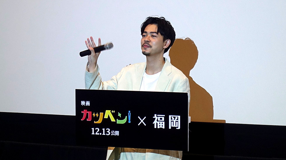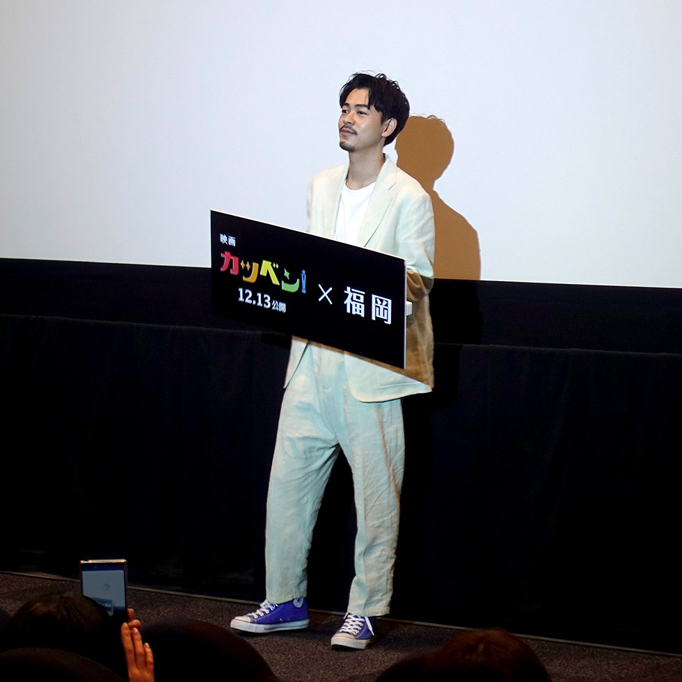 映画『カツベン!』の12/13公開に先駆けて、主演の成田凌さんが来福し、上映後の舞台挨拶に登壇。