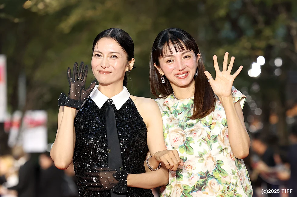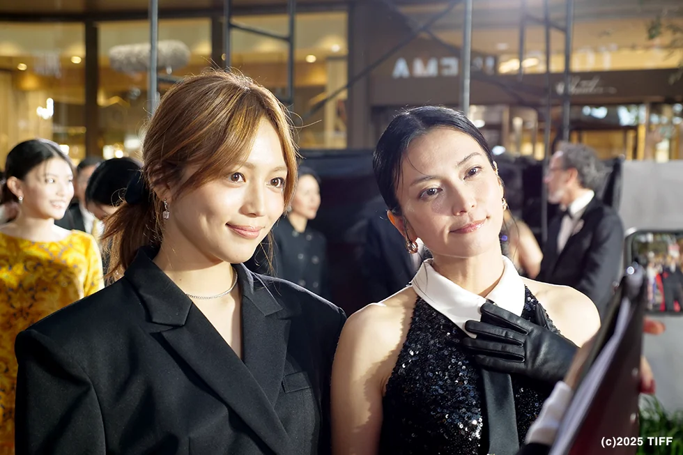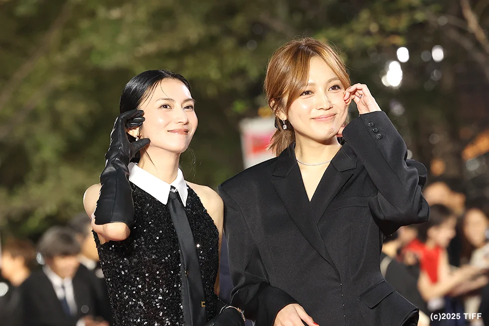 映画作品ではなくTIFFシリーズに出品される『スキャンダルイブ』(金井紘監督)に出演の襟付きノースリーブブラックスパンコールドレスにネクタイスタイルの柴咲コウさんと、オーバーサイズなブラックジャケットで登壇の川口春奈さんもレッドカーペットを大きく沸かせた。